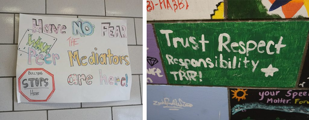 TRR을 구현하기 위해 학교 곳곳에 이 가치를 새겨 넣은 것은 물론, 상징적으로 신뢰와 존중, 책임을 배우게 하기 위해 학생들 모두에게 신뢰카드라는 명찰 같은 것을 패용하게 한다. 이 학교에는 별다른 생활규범이 명시되어 있지 않지만, 서로 인정하는 상호 신뢰와 존중을 지켜나가기로 약속한다. 이에 동의한 학생은 신뢰카드를 갖게 되는데, 이는 일종의 특권으로 이 카드를 소지하면 어느정도 행동의 자율권을 보장한다. 이를테면 수업시간에 화장실을 다녀온다던지, 사물함에 다녀 온다던지 하는 자율성이 상호신뢰속에서 보장된다. 그러나 권한에는 책임이 따르듯이 이런 특권을 남용했을 때에는 책임을 묻게되고, 신뢰카드를 반납해야 한다. 카드를 다시 찾기 위해서는 선생님과 회복적 대화모임을 거쳐 본인에게 어떤 일이 있었고, 어떻게 책임질 것인지를 정한 이후에 권한으로서 신뢰카드를 다시 찾을 수 있다. 만일 본인이 신뢰카드, 즉 권한을 회복하고 싶지 않다면, 그 학생은 권한없이 주어진 학교의 규칙을 따라야 한다. 어쩌면 아무런 규칙이 명시돼 있지 않은 이런 방식이 다소 혼란스러워 보일 수 도 있지만, 이런 것이 가능하기 위해서는 교사들이 학생들에게 먼저 존중의 태도로 대하고 신뢰를 보여주어 탄탄한 관계망을 만들었을 때, 즉 학교 전체가 이런 긍정적인 존중의 압력이 형성되었을 때 작동될 수 있다.