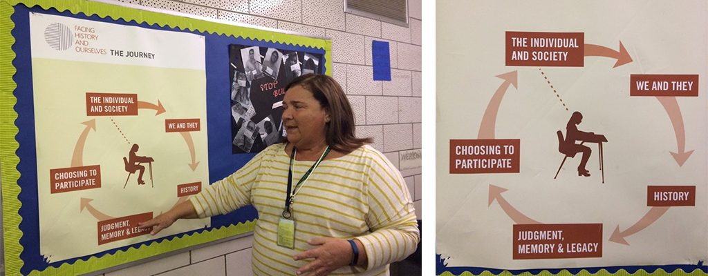 우리가 현장에서 이 학교의 설립자이자 교장인 Marc Engoglia와 역사교사인 Martha Verde에게 학교 설명을 듣던 때는 이제 막 도날드 트럼프가 미국 대통령 취임식을 앞두고 있던 때였다. 공교롭게도 오하이오주는 트럼프에게 몰표를 안겨준 주중에 하나이기도 하다. 교장선생님이 학생들은 불의와 부당한 차별을 목격할 때는 물러서지 말고 맞서 싸우고 당당히 일어서 행동해야 한다고 배운다며, 홀로코스트의 역사와 미국의 억압의 역사 중에도 불의에 항거했던 많은 사람과 마틴 루터킹 같이 정의를 위해 투쟁했던 이들이 있었다고 이야기해 주자, 우리 연수단의 현지 진행자인 Jennifer Batton 교수가 최근에 있었던 감동적인 사례를 들려주었다.